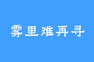 雾里难再寻